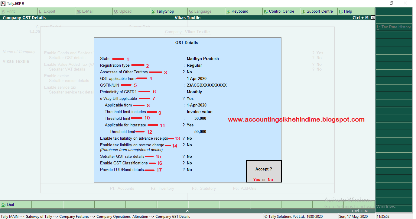 (Note :- एक बार Tally में  GST Enable करने के पश्चात यदि किसी प्रकार की गलती होती है। तो GST में Alter करने के लिए Same यही प्रोसेस होती है।)