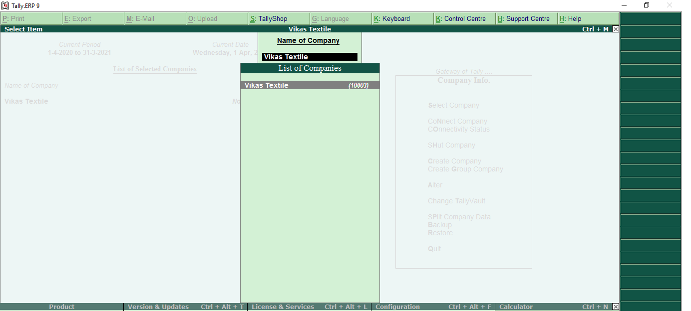 D. Alter Option पर Enter करने के बाद हमें एक Select from का विंडो दिखाई देगा | इस विंडो से हम उस company का चयन करेंगे | जिसमे हमें Alteration करना है।