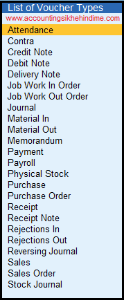 Step 5 :- अब हमारे सामने सभी Voucher Type की List Open होगी।