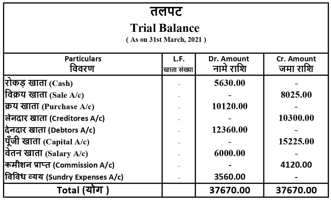 नमस्कार दोस्तों इस पोस्ट में हम तलपट (Trial Balance) को एक उदाहरण के द्वारा समझेंगे। दोस्तों तलपट क्या है। और तलपट कैसे …